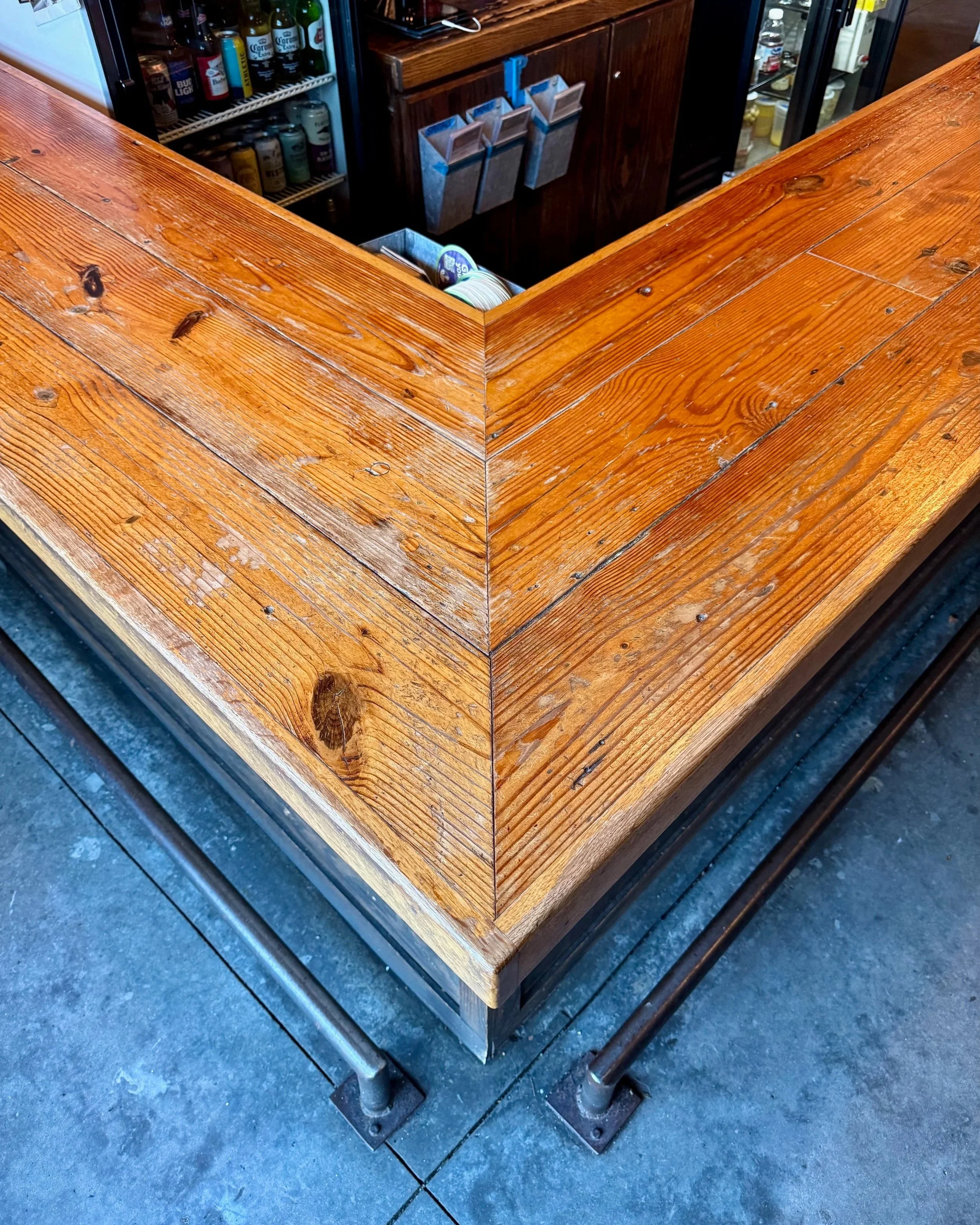 Sometimes, the best projects start with a beer and a burger. During a recent date night at Durham’s Geer Street Garden, I found myself looking past my plate and at the surfaces beneath it. The tables and bar — made from incredible, thick-cut reclaimed factory floorboards — were showing the honest wear and tear of years of community use.