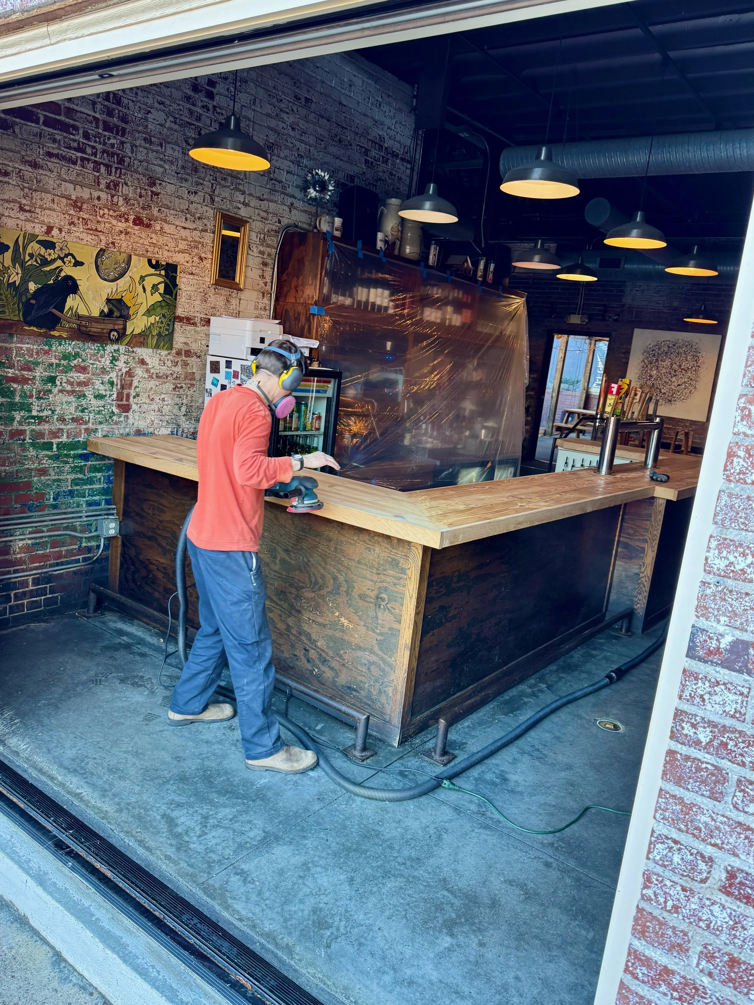 Working around a restaurant’s schedule is a delicate dance. On Monday and Tuesday, I was able to wrap up the smaller sections before the lunch rush. By Wednesday and Thursday, the weather cleared up, allowing the owner to seat guests outside while I tackled the “big ticket” items inside.